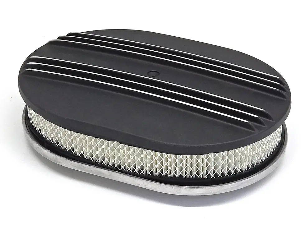 12" Oval Half Finned Air Cleaner - Black Aluminum for Classic Chevy Ford